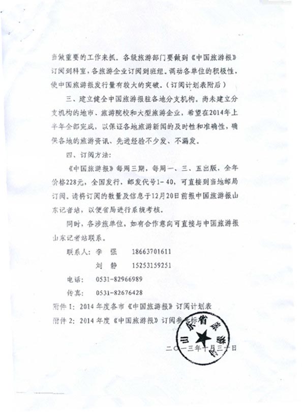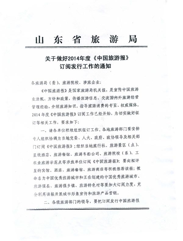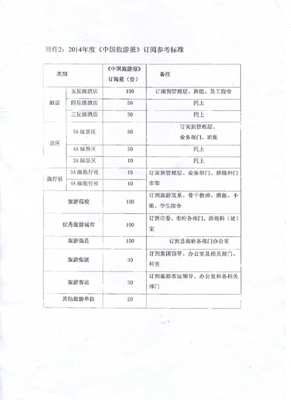 关于转发省旅游局《关于做好2014年度中国旅游报订阅发行工作的通知》的通知(2013年11月12日)