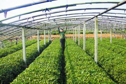 11月18日,东港区后村镇皂户沟村村民李宗顺正忙着为自家2亩茶园加固拱棚。该村耕地面积860亩,茶园650亩,是后村镇重点打造的茶叶生产专业村。截至目前,后村镇流转7大茶园片2300亩。