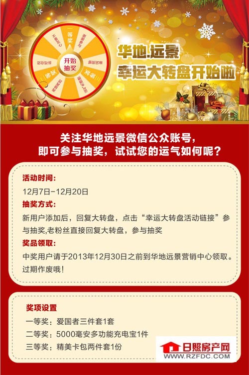 奖品领取:中奖用户请于2013年12月30日之前到华地·远景营销中心领取。过期无效哦~