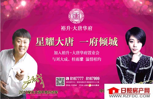 加入裕升·大唐华府置业会,会员独享开盘1%优惠,并且能够与星光大道年度总冠军刘大成、中国好声音学院桂雨濛温情相约。