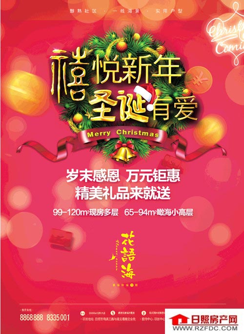 喜悦新年,圣诞有爱。日照外滩·赛福特城花语海——99-120㎡现房多层,65-94㎡瞰海小高层,岁末感恩,万元钜惠,精美礼品来就送!