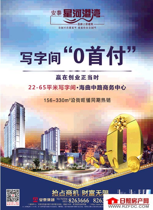 安泰·星河港湾,显赫上层建筑。写字间“0首付”,赢在创业正当时,22-65平米写字间·海曲中路商务中心,156-330㎡沿街商铺同期热销!