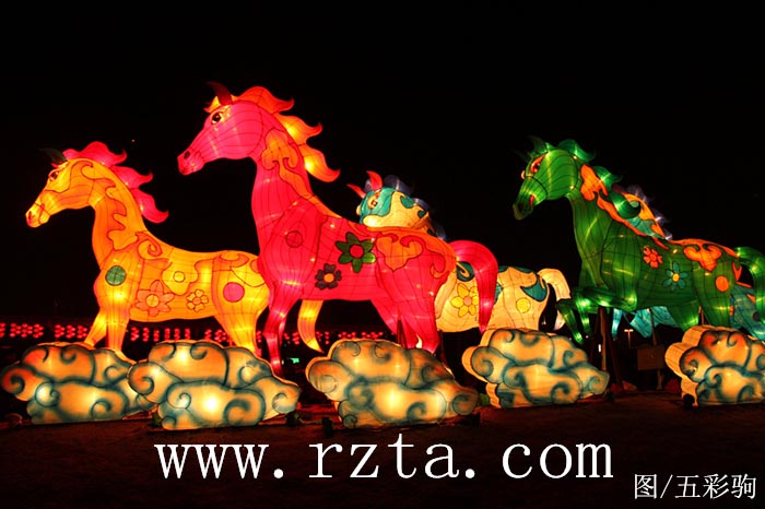 今年的元宵灯会上的彩灯已经从年正月初一就开始亮了,一直持续到正月二十。灯会的主题以马为主,主要灯组有:花开盛世、鸿运连连、纳福门、幸福日照、天马星空、日照沙绣、五彩神驹、金玉满堂、欢乐雪人、猪猪侠、龙马精神、家庭美德、一帆风顺、快乐大象、玩具总动员、航母梦、二十四节气、水上运动之都等。在压缩规模的情况下,灯组取意精颖,标新立异,实现民俗风同流行元并进、观赏情与教育意齐驱,给游客们“年年有灯会,今年大不同”的观赏乐趣。