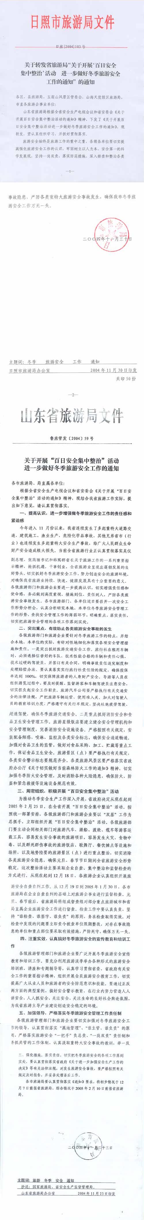 关于转发省旅游局“关于开展‘百日安全集中整治’活动 进一步做好冬季旅游安全工作的通知(2004年12月03日)