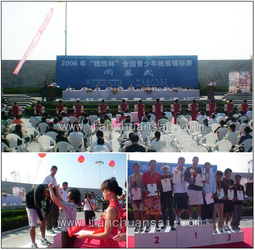 “魏园杯”2006年全国青少年帆板锦标赛在大会组委会的精心组织下,在全体运动员、教练员、裁判员和大会工作人员的共同努力下,经过6天的激烈角逐,各项赛程圆满结束,于今天下午在万平口演艺广场举行闭幕式。 出席的领导有中国帆船帆板运动协会秘书长姚新培;副秘书长周长城、山东省水上运动技术学校校长隋拥军、日照市人大常委会副主任蔡建华、副市长解世增、政协副主席荆建迎;中共日照市纪律检查委员会副书记唐仕泉;日照军分区后勤部部长王庆武等,闭幕式由日照市政府秘书长黄秀芹主持。 本次比赛中,各运动队顽强拼搏、奋勇争先,认真对待每一场比赛,表现出了高超的技战术水平和良好的体育道德风尚,展现了我国水上健儿的风采,整个比赛在团结、紧张、激烈、友好的气氛中进行,比出了风格,赛出了水平,经激烈角逐,陕西队李四仔、许玉平分别摘走男、女米氏甲组金牌;广东队余进乐、山东队沙鸥分获男、女米氏乙组冠军;杭州队洪强和山东队朱锦玉分别摘取公开级长板组和短板组的金牌。海口队、广东队分获男、女米氏甲组团体冠军;广东队和汕头队分获男、女米氏乙组冠军。为期6天的锦标赛将给青少年运动员一个锻炼的机会,并发现和选拔国家高水平的帆板运动后备力量。 大赛还评出了体育道德风尚奖,以及优秀裁判员奖。日照市体育局获得优秀组织奖。