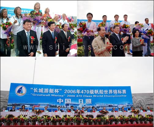 2006年9月13日,“长城游艇杯”470级帆船世界锦标赛进入最后一天的激烈角逐,于下午17:30在日照万平口演艺广场举行了热烈而隆重地闭幕仪式。中外运动员、裁判员、教练员、国际官员和热情的日照人民约600人参加了闭幕式。