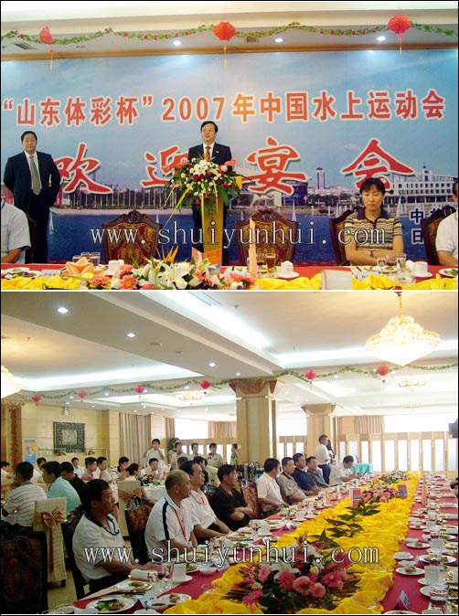 8月28日,我市在太公宾馆举行盛大午宴,欢迎前来参加“‘山东体彩杯’2007年中国水上运动会”的团体代表嘉宾。近百名来自全国各地的团体代表参加了欢迎宴会。日照市委常委、副市长侯成君出席宴会并讲话,市纪委副书记、监察局局长臧运鑫主持欢迎宴会。 侯成君在致辞中说:2007年中国水上运动会是中国体育史上最大规模的水上盛会,对于备战2008北京奥运会并营造良好氛围、普及和提高水上运动水平,促进区域经济社会发展都有着十分重要的作用。在国家体育总局和山东省委、省政府的正确领导下,日照市按照“安全水运、创新水运、奥运水运、生态水运、开放水运、欢乐水运”的办会理念将全力以赴,以饱满的热情和细致的工作,为各项比赛创造良好条件,为各代表团和各位来宾搞好服务。
