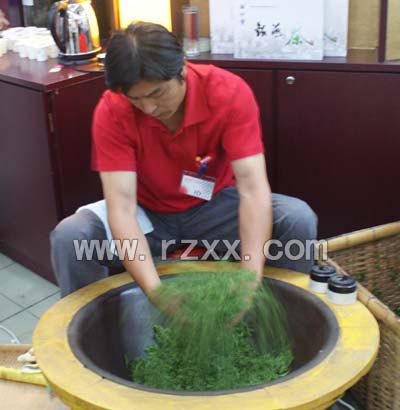 6月20日,在日照百货大楼银海绿茶销售专柜,清新扑鼻的茶香吸引了不少驻足观看的市民。 为了让广大市民了解银海绿茶的生产加工过程,加深对银海绿茶的认识,提高银海绿茶的知名度,银海茶业邀请了炒茶师进行现场炒茶。在现场,爱茶的市民可观看茶叶制作的全过程,领略茶技师的精湛茶艺,同时还可以品味新茶的清香馥郁。