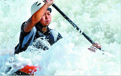 9月4日,来自山东队、四川队、贵州队的20多名运动员正在奥林匹克水上公园激流回旋比赛场地进行皮划艇激流回旋训练,备战第十一届全运会。