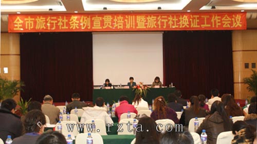 为贯彻和切实做好《旅行社条例》的实施,2009年11月4日,日照市旅行社条例宣贯培训暨旅行社换证工作会议在日照凌海大酒店举行。日照市旅游局副局长张荣英出席会议, 日照市旅游局行业管理科科长唐琴主持会议。