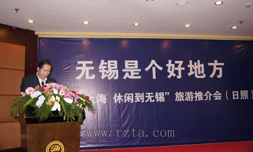 无锡市旅游局局长蒋瑞兴在会上致辞,他说,上海举办的世博会,既是城市盛会,也是旅游盛会。无锡市旅游局高度重视,充分利用无锡处于上海“两小时都市圈”的地理和旅游资源优势,提出了“世博在上海,休闲在无锡”的口号。紧紧围绕“无锡是个好地方”,全力打造旅游城市品牌。积极打造产品工程,推出“太湖蠡湖生态休闲之旅、佛教文化博览体验之旅、吴地文化发源地体验之旅、中国民族工商业文化体验之旅”等长三角世博主题体验之旅。启动了“世博在上海,休闲到无锡”旅游推广工程,并全面推进旅游公共服务体系对接上海服务世博工程,加大无锡旅游资源的宣传推广力度。