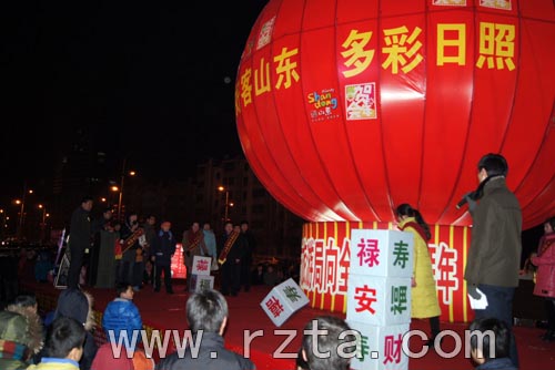 正月十三晚21:00左右,市旅游局组织的公益性“抢福”活动正在紧张热烈地进行,新营小学三年级学生臧鹏掷出了福、禄、寿、喜、财、安6个字,捧走了“六六大顺”特等奖,掀起了“抢福”游戏活动高潮。