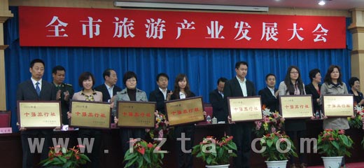 会上,对在2010年全市旅游工作中做出突出贡献的先进集体和个人进行表彰,授予山孚大酒店等10个单位“十佳旅游饭店”称号;授予日照海滨国家森林公园等10个单位“十佳旅游景区(点)”称号;授予日照碧波国际旅行社等10个单位“十强旅行社”称号:授予日照金秋旅行社等10个单位“十优旅行社”称号。同时在会上市贺年会工作领导小组决定授予市宣传部等10个部门、五莲山风景区管委等10个旅游经营单位“2011年‘好客山东、多彩日照’贺年会先进单位”荣誉称号,授予郭长玉等52名同志“2011年‘好客山东、多彩日照’贺年会先进个人”荣誉称号。