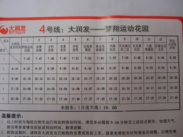 大润发班车路线图(2011年08月20日)
