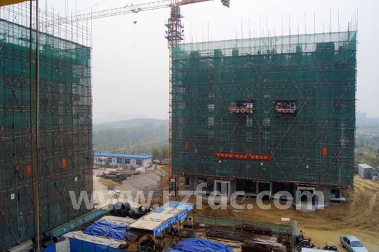 ●一号楼二次结构所需设备安装完成,即日开始二次结构的施工,园区会所主体正在紧张施工中,已完成基础钢筋的绑扎和模板的安装