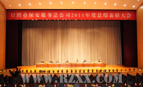 1月14日,日照市保安服务总公司2011年度总结表彰大会在日照会展中心举行,为表彰先进,激励斗志,进一步推进保安工作和队伍建设再上新台阶,大会就2011年度保安服务总公司的先进工作者和优秀团队进行了表彰和颁奖,日照市公安局政委来永庆、公安局副局长孙运涛、治安巡逻支队政委郭淑钦,日照市保安服务总公司总经理魏绪杰,副总监武装押运大队长李法贞、副总兼人力防范公司经理公培元、副总经理刘国亮等列席了大会。公培元主持会议。