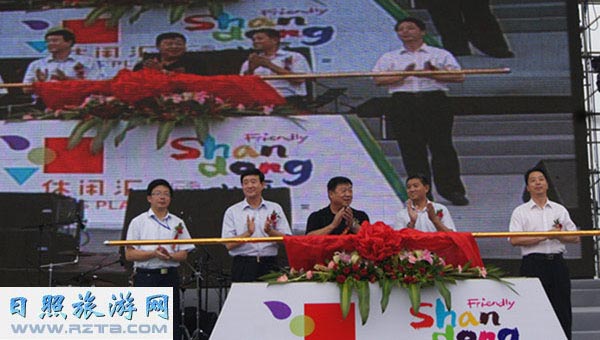 山东省旅游局副局长赖征宇,日照市副市长陈刚,市旅游局局长王立新,日照市住建委副主任、市城投公司总经理魏茂军,市委宣传部副部长杜庆森出席启动仪式并共同推动启动杆。为期两个多月的日照市2012好客山东休闲汇正式开启。