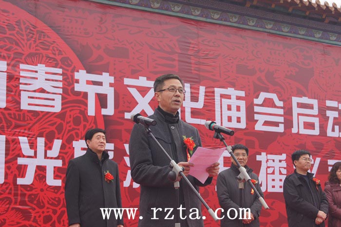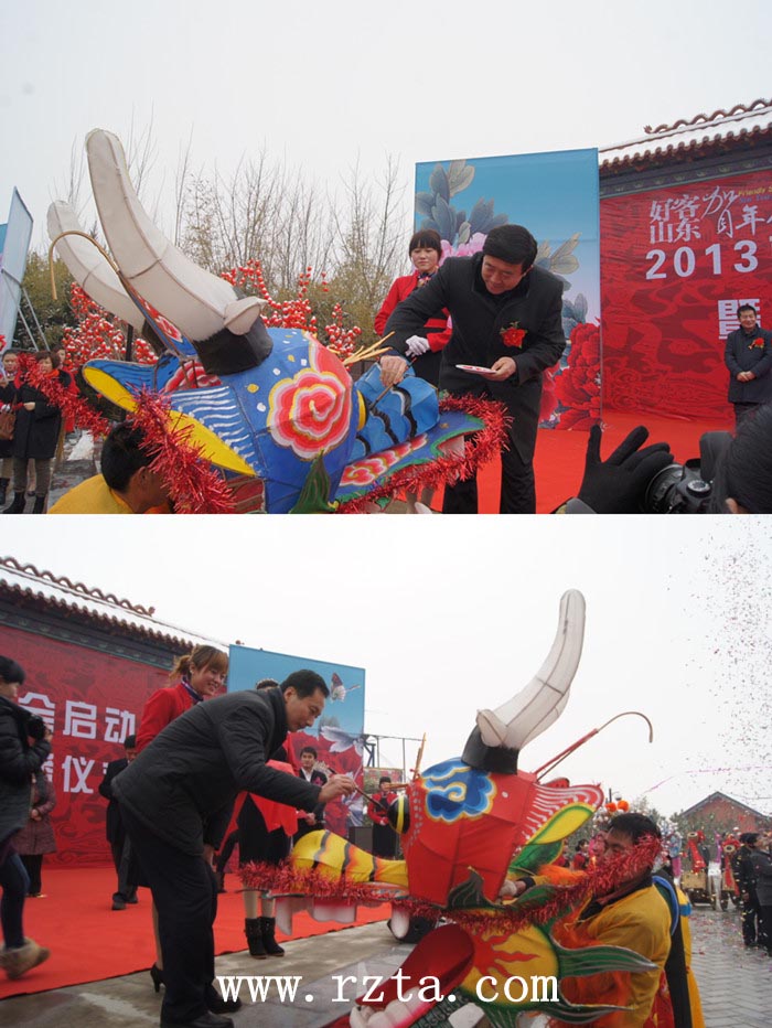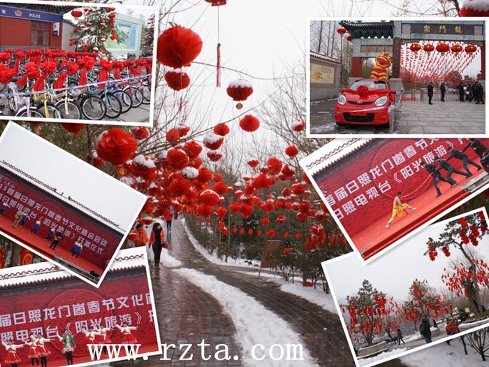 飞龙纳福辞旧岁,金蛇狂舞迎新春。2月6日早,2013年首届日照龙门崮春节文化庙会开幕暨日照电视台《阳光旅游》栏目开播仪式在龙门崮旅游度假区盛大启幕。日照市旅游局局长王立新、东港区政府副区长王海滨为龙门崮庙会金“龙”点睛;日照市旅游局副局长禚磊、日照广播电视台副总编李世成为日照电视台《阳光旅游》栏目开播揭幕;山东荣安集团董事长刘加楼以及东港区、三庄镇的相关领导出席了仪式并作了致辞。