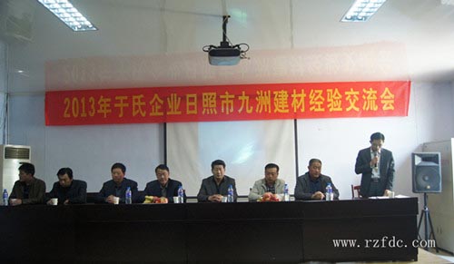 2013年度于氏企业日照九洲建材经验交流会在日照市九洲建材会场召开。于氏企业联谊会秘书长,于氏企业联谊会会长,九洲建材部门领导及来自莒县五莲诸城等地的于氏企业负责人参加了交流会发言。