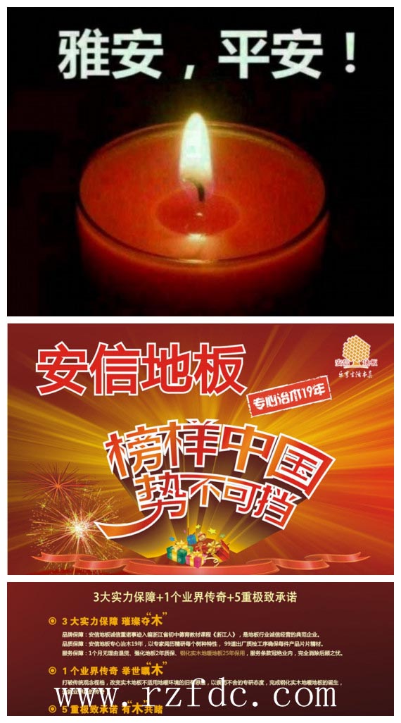爱心献雅安,温暖有安信 !选择安信,祈福雅安!购买安信地板,将以您的名义捐款100元支援雅安!