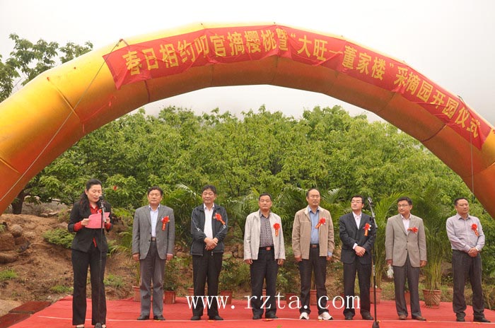 五莲山下展新绿,满树樱桃带雨红。5月18日上午,春日相约叩官摘樱桃暨“大旺-董家楼”采摘园开园仪式在叩官镇大旺村举行。市旅游局副局长赵志超,市旅游局副调研员、市旅行社协会会长孙开宏,五莲县县政府副县长杨茂波,五莲县委宣传部副部长、五莲县旅游和文体广电局局长单忠元,五莲县县委宣传部副部长王松华,以及来自旅行社、摄影协会、单车俱乐部负责人和新闻媒体代表近400余人出席活动。