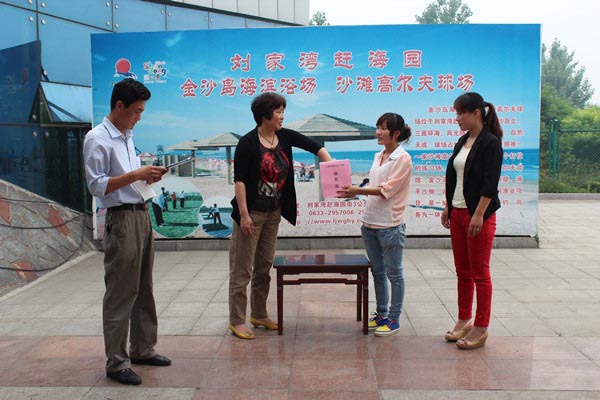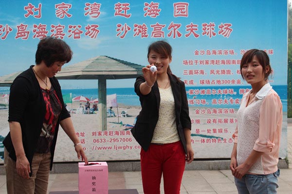 在景区工作人员和游客代表的共同见证下,沙滩寻宝幸运大抽奖每周幸运奖中奖号码产生了。6月1日-6月9和6月10日-6月16日两期的“每周幸运奖”中奖号码分别为00011075和00010217。 以上两名幸运游客可持有效证件免费领取价值100元的银饰品。