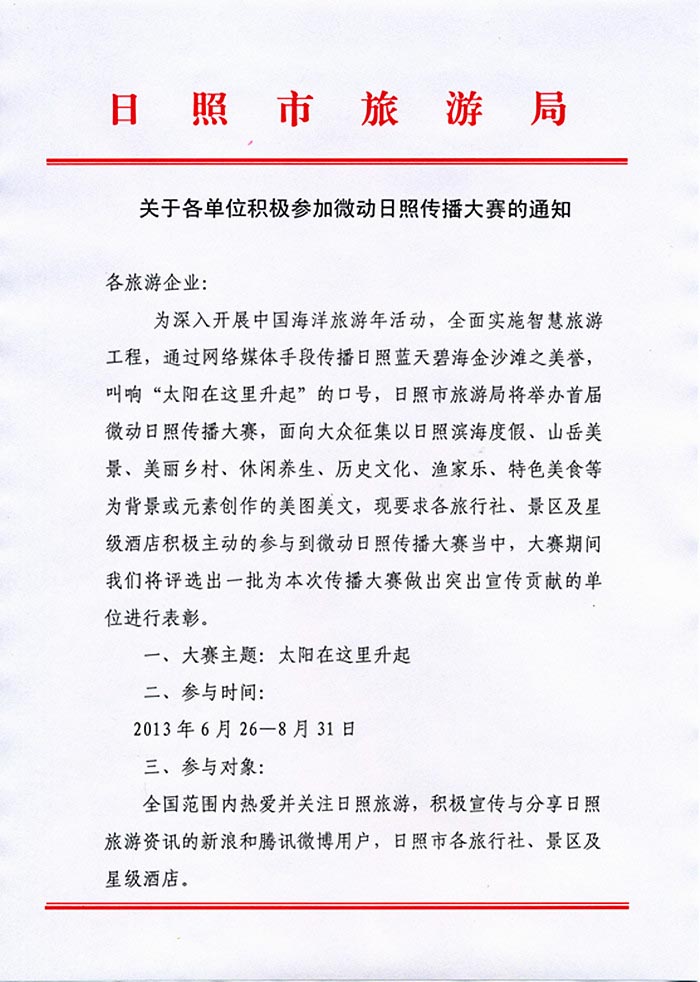 关于各单位积极参加微动日照传播大赛的通知(2013年06月26日)