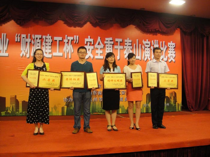 6月20日,由省建设工会、省建筑施工安全监督站共同举办的全省住房城乡建设系统“财源建工杯”安全责任重于泰山演讲比赛在滨州举行,来自全省17地市的37支代表队75名选手参加了比赛。 日照市住建委选送了2支代表队4名选手参加了本次比赛,比赛中,选手们立足本职,富有激情的讲述了安全责任重在落实的重要性,给评委留下了深刻的印象。经过激烈的角逐,山东港湾建设集团获得企业二等奖,山东日建建设集团获得企业三等奖,3人获得个人二等奖、1人获得个人三等奖。由于组织工作得力,日照市住建委荣获全省住房城乡建设系统“财源建工杯”安全责任重于泰山演讲比赛精神文明奖、团体奖铜奖。