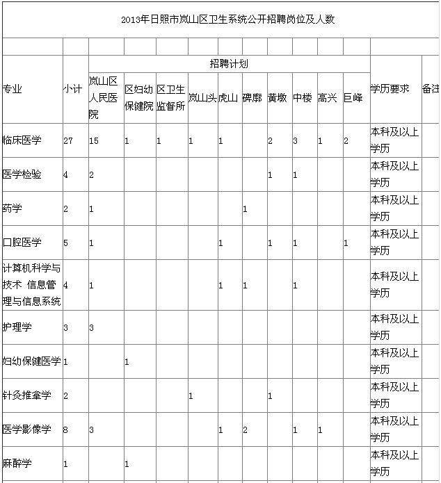 2013年日照市岚山区卫生系统招聘专业技术人员64名(2013年07月20日)