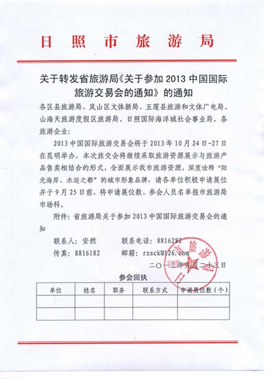 关于转发省旅游局《关于参加2013年中国国际旅游交易会的通知》(2013年09月23日)