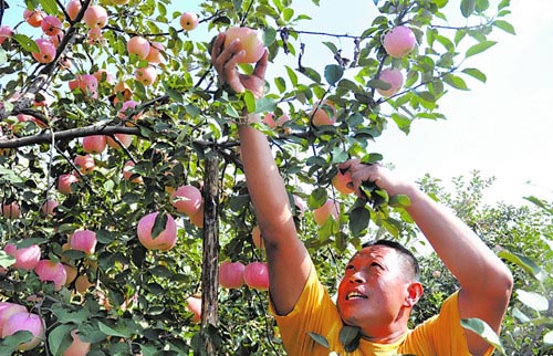 果农王先生介绍说,他家有5亩地的苹果园,今年产量大行情也好。一亩地可产苹果1万斤左右,个头大卖相好的苹果2块多钱,也有长相不好个头小的要便宜一些,但平均下来一亩地能净赚1万元 。“一亩地果树包括人工费、套袋追肥等大约需要三五千元。”