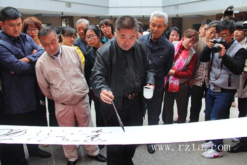 日照市著名书法大师刘玉岭先生前来参加了开幕式,并即兴现场创作书法作品一幅,其“雄浑肃穆、气势磅礴”又“禅生灵府、道出笔端”的笔法艺术,与刘明星先生的画作相得益彰,让现场观众大饱眼福。