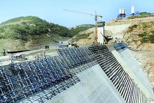 龙潭沟水库工程进入高密度施工(2013年10月19日)