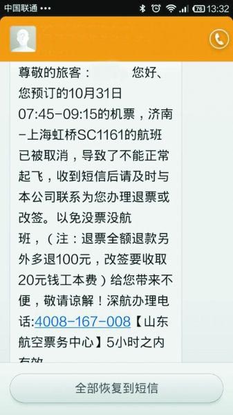 乘客收航班停飞诈骗短信 航空公司否认泄露信息(2013年10月31日)
