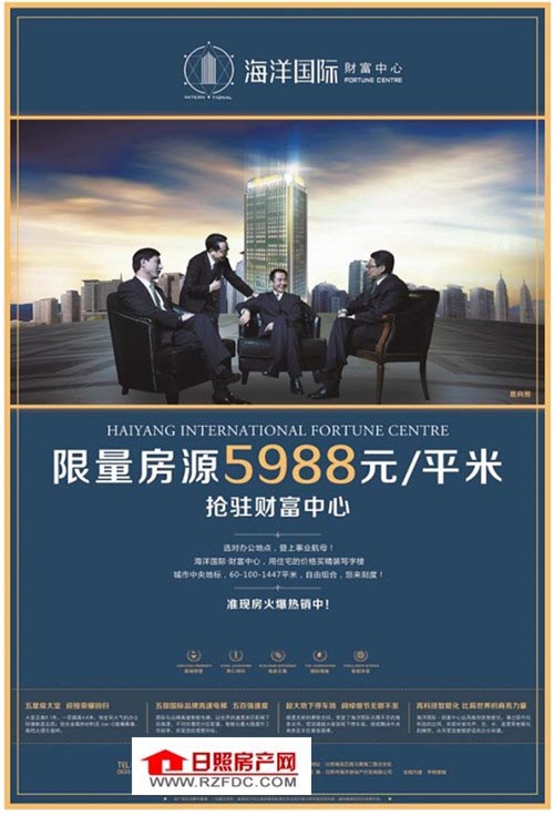 海洋国际·财富中心——限量房源5988元/㎡,抢注财富中心,准现房火爆热销中! 选对办公地点,登上事业航母!海洋国际·财富中心,用住宅的价格买精装写字楼,城市中央地标,60-100-1447㎡,自由组合,您来刻度!