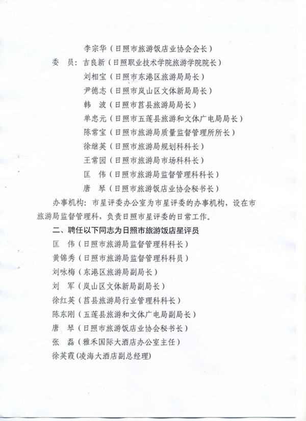 关于调整日照市旅游饭店星级评定委员会和市级星评员组成人员的通知(2013年11月08日)