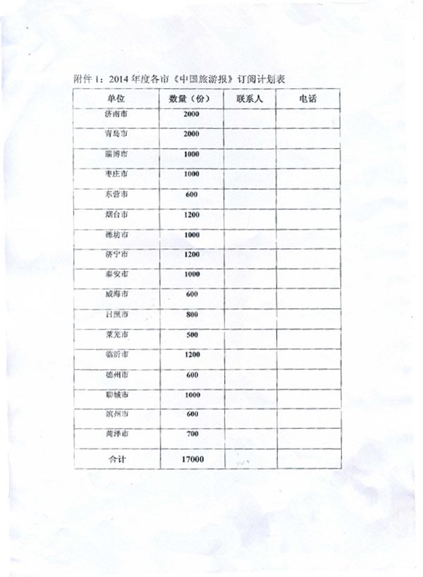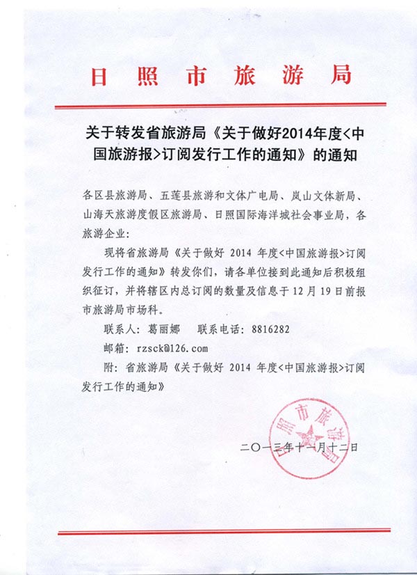 关于转发省旅游局《关于做好2014年度中国旅游报订阅发行工作的通知》的通知(2013年11月12日)