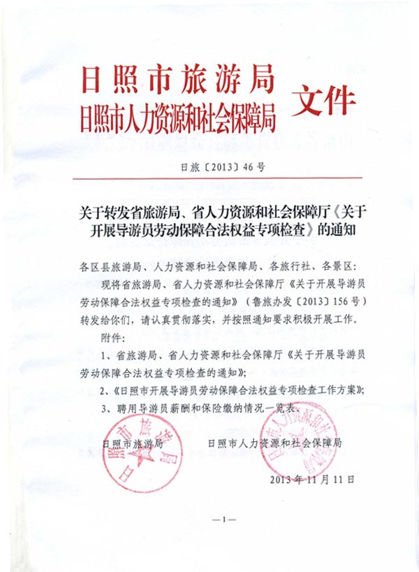 导游员劳动保障合法权益的通知(2013年11月13日)