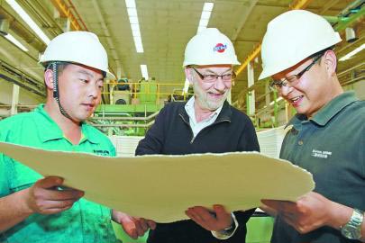 11月18日,在山东亚太森博浆纸有限公司生产车间,来自加拿大国际制浆造纸专家PercyJantz,深入车间生产一线,解决生产中遇到的技术难题。 目前,山东日照市共有来自韩国、日本、美国、加拿大、印度、俄罗斯、新加坡等30多个国家和地区的外国专家500余名,分布在制造业、教育卫生、电子信息、汽车及相关零部件制造、园林机械、旅游服务业、仓储物流等领域,成为日照蓝色经济升级转型的重要推动力量。