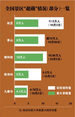 国家旅游局副局长、全国假日办执行主任吴文学曾在10月中旬透露,国家旅游局将在景区开放和旅游规划方面出台管理办法,并就景区的最大承载量和旅游发展规划、实施、评估制定相关导则,这两个办法和导则将于下月出台。不过眼看11月已快过完,办法和导则仍未见动静。其实,景区最大承载量的问题,更是一场景区利益的博弈。当景区人潮散去,旅游迎来淡季之时,景区是否会对最大承载量等问题进行“冷思考”?在相关办法出台之前,不如再次就这一问题提出我们的质疑。 一问 谁来计算景区最大承载量 “当北京商报记者向一些景区工作人员询问其自己统计的最大承载量时却发现,他们说出的部分数据与政府公布的数据有不小的出入。” 虽然景区最大承载量目前由政府相关部门统一发布,但是景区自身也对最大承载量有自己的统计。据北京市旅游委公布数据显示,目前景区最大承载量最高的为奥林匹克公园中心区,最多容纳50万人,最佳容量为30万人。纵观北京市旅游委国庆节前期公布的79个景区,承载量在10万人以上的共有12个,基本上都是北京黄金周等旅游高峰期人流量最大的景区。 不过,当北京商报记者向一些景区工作人员询问其自己统计的最大承载量时却发现,他们说出的部分数据与政府公布的数据有不小的出入。如北海公园工作人员曾告诉记者,北海公园的最大承载量约为6万,最佳承载量为4万,但公布的数据却是北海公园的最大承载量为8万,最佳承载量为3万;天坛公园的工作人员告诉记者7万的最佳承载量也与公布的6万最佳承载量相差1万。这样的数据差距,不禁让人疑惑,景区最大承载量究竟是如何计算的? 资料显示,景区最大承载量即景区旅游容量,也称旅游承载力。是在一定时间条件下、一定旅游资源空间范围内的旅游活动能力,即满足游人最低游览要求,包括心理感应气氛以及达到保护资源的环境标准,是旅游资源的物质和空间规模所能容纳的游客活动量。在中国旅游研究院研究员战冬梅看来,目前自然类景区的容量核算主要有“经验量测”和“理论计算”两种方法。“经验量测”先根据景区接待设施能力或凭经验估计一个较保守的容量数值,然后在实际接待中结合每年(季)的景区监测结果对比来进行不断的调整,使其达到一个最佳数值。“理论计算”主要包括“面积法、线路法”等。“面积法”是根据景区总面积、开展旅游活动的面积和每个游客需占用的面积,计算出同一时间内景区所能接待游客的饱和量,这个方法适用于游客大面积利用景区或游客停留时间较长的景区;“线路法”是根据景区内供游客游览的游道长度和每位游客需占有的游道长度,计算出同一时间内景区所能接待游客的数量,游客以游道为主进行游览的景区适用线路法进行计算。 据了解,为保证计算出的数值更加全面、准确反映出景区容量,旅游规划机构通常在计算中加入很多其他指标。目前业内比较全面的测算方法,测算指标都包括旅游“心理容量、资源容量、生态容量、经济发展容量、地域社会容量”等,取这些容量中数值最小的作为旅游区核定的旅游容量。北京绿维创景规划设计院旅游目的地旅游产业规划设计中心主任范娟娟介绍,这些容量测算都有相应公式,但在实际操作过程中,却遇到缺乏容量指标问题,如“游客心理容量”,某类型的景区,游客能承受的单位心理容量是多少、最佳心理容量是多少难以进行标准统计。不同类型的景区,单位生态容量和资源容量等也同样如此,都缺乏详尽的标准。此外,“经济发展容量”和“社会容量”的单位标准更是难以把握。 在范娟娟看来,目前主要有两个标准涉及到旅游容量测算的问题。分别是《风景名胜区规划规范》和《自然保护区生态旅游规划技术规程》,这两个规范给出了风景名胜区和自然保护区的旅游容量测算规范,但这两个规范并不能囊括旅游区的所有用地或是资源类型。据了解,目前的景区最大承载量或者说旅游容量,都是根据现有的一些规范,借鉴国内外成熟景区的经验测算出来的,方法虽然越来越完善,但依然缺乏规划指导层面的完整标准和规范。为此,专家建议,在以最大承载量作为标准衡量景区之前,必须建立一套完整的测算规范和标准。 二问 谁来核准景区最大承载量 “以北京为例,不同景区的直属管理部门就各不相同。由于主管部门复杂不同,使得景区最大承载量的核准工作也变得复杂。” 按照《旅游法》规定,景区公布的最大承载量必须是由景区主管部门核定之后的数据,但究竟哪个部门才是景区的主管部门,景区管理处之上哪一级才算是景区的主管部门,也成为目前景区发展中的一大问题。 以北京景区为例,不同景区的直属管理部门就各不相同。如北京市内11家市属公园由北京市公园管理中心管理,公园管理中心直属于北京市园林绿化局;圆明园尽管是重要的历史遗迹,但属于海淀区政府管理;恭王府是重点文物保护单位,下属于文化部;北京奥林匹克公园的具体工作由奥林匹克公园管理委员会管理,管委会为北京市政府的派出机构,委托朝阳区政府管理;什刹海景区管委会属于西城区,但什刹海景区所包含的水域则属于园林绿化局。 以通常所说的风景名胜区为例,根据1985年颁布的《风景名胜区管理暂行条例》,其中第5条规定:“风景名胜区依法设立人民政府,全面负责风景名胜区的保护、利
