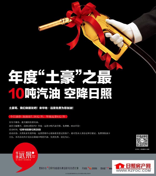 活动内容:凡驾私家车到华地·远景营销中心现场看房登记的客户,就可凭本人身份证和行驶证,免费领取加油卡大礼,本次活动共计送出总量超10吨的汽油,先到先得,送完为止。