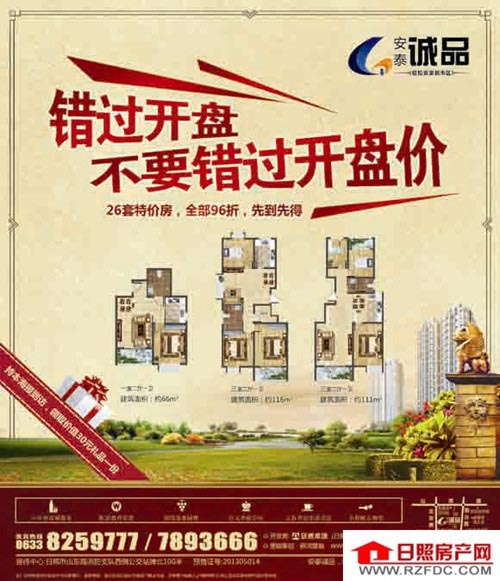 安泰·诚品——26套特价房,全部96折,先到先得!还在等什么?错过开盘,不要错过开盘价!