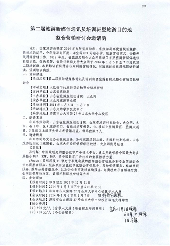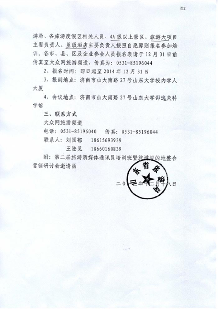 关于转发省旅游局《关于支持大众网举办第二届旅游新媒体通讯员培训班的函》的通知(2013年12月26日)