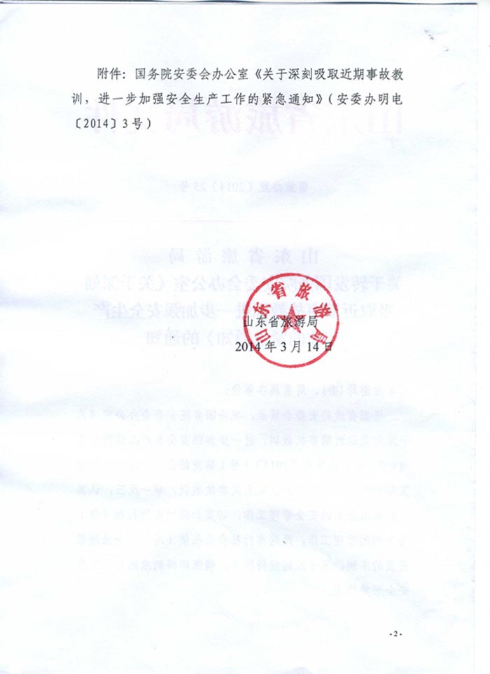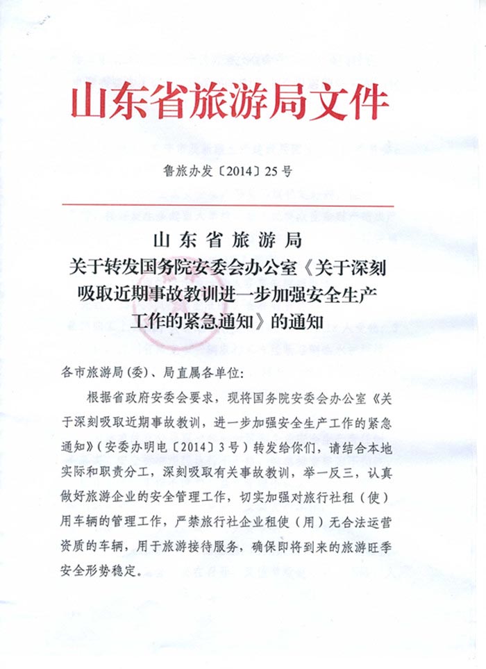 日照市旅游局关于转发省旅游局加强安全生产(鲁旅办发 [2014]25号)文件的通知(2014年04月08日)