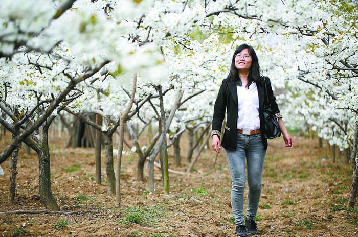 4月13日,五莲县叩官镇常林子村丰水梨采摘园,游客在赏花、摄影。 近年来,该镇用好青山绿水资源,大力发展乡村旅游,目前已经形成了集梨园观花、樱桃采摘、蔬菜采摘、农家餐饮等于一体综合旅游项目,成为市民休闲游玩的好去处。