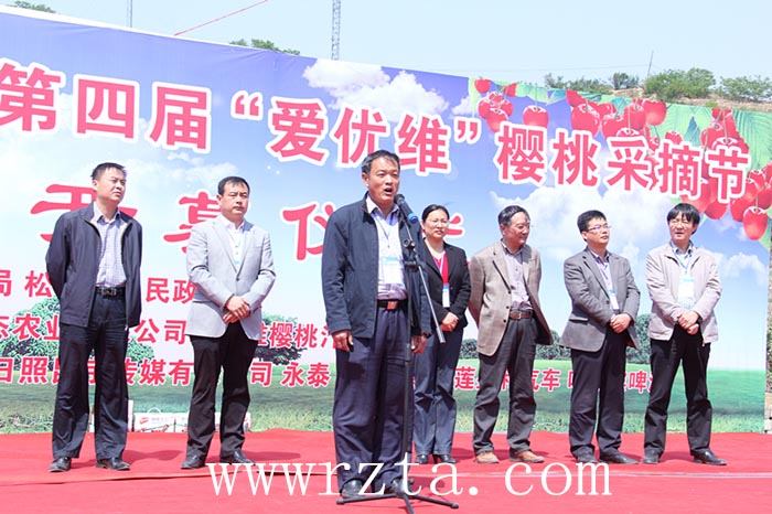 图/市旅游局副局长赵志超宣布2014年2014年五莲县第四届“爱优维”樱桃采摘节开幕