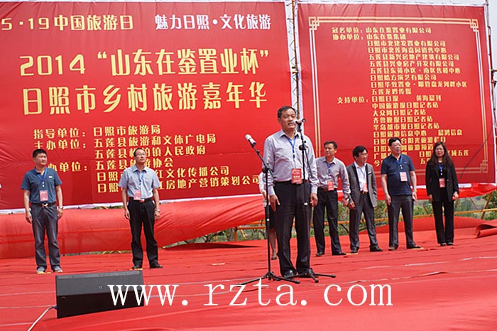 图/日照市旅游局副局长赵志超宣布5.19中国旅游日宣传活动暨五莲县乡村旅游嘉年华开幕