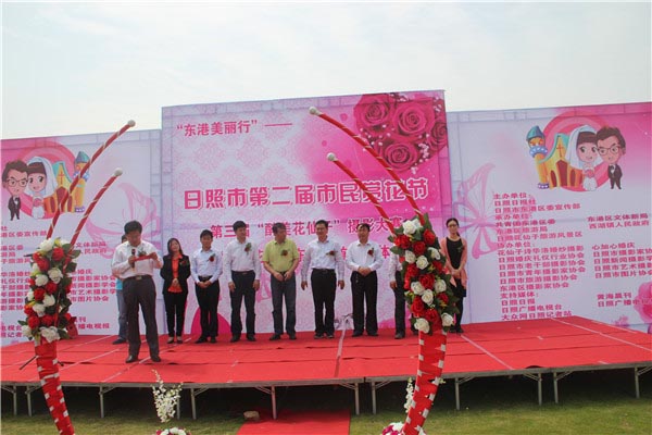 5月17日上午,“东港美丽行”——日照第二届市民赏花节、第三届“醉美花仙子”摄影大赛暨“爱如花香”东港首届集体婚礼在花仙子旅游风景区盛大开幕。开幕式由日照日报社、东港区委宣传部主办,共青团东港区委、东港区文体新局、东港区旅游局、西湖镇人民政府、花仙子旅游风景区承办。