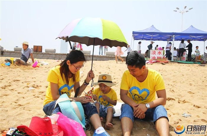 趁着平时人少来海边玩的大部分以家庭为单位,记者了解到,大部分人都是专门请假带孩子出来玩的。