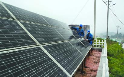 6月20日,在东港区陈疃镇西尚沟村蓝莓种植基地,日照供电公司技术人员正在对该基地的光伏供电站进行维护。 随着“微灌溉”技术的推广,用电成了蓝莓种植一个重要影响因素。今年以来,蓝莓之乡陈疃镇扩大投入电网建设资金600余万元,全力保障蓝莓基地用电。